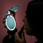 Þegar þú opnar STYLPRO Flip ‘n’ Charg, kviknar ljósið um leið. Ef þú vilt slökkva á ljósið á meðan þú notar spegilinn skaltu ýta einu sinni á hnappinn og ljósið dofnar.
