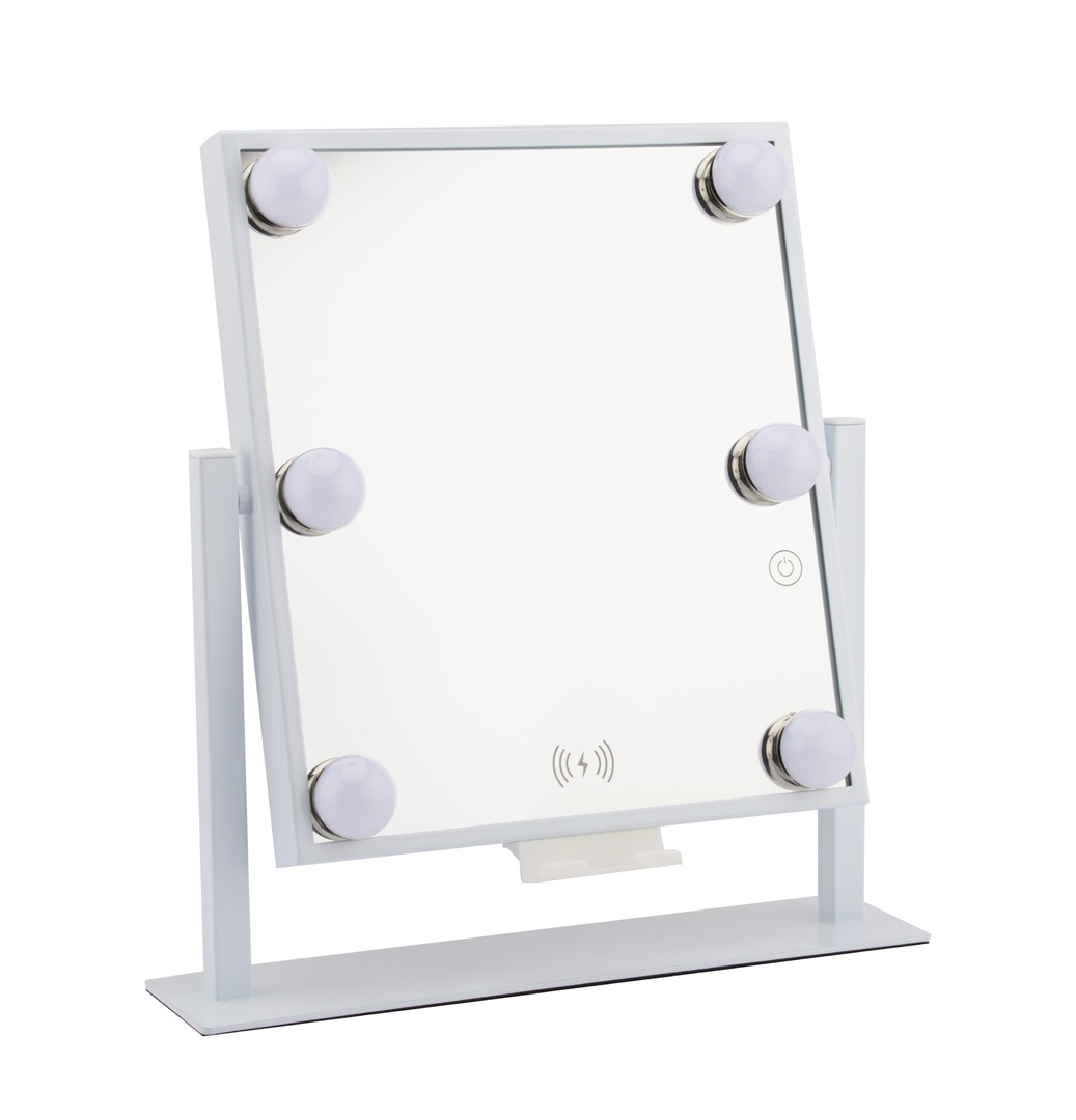 Stylpro Glam & Groove Hollywood Vanity Music Mirror er útbúinn hinum fullkomnu dimmandlegu „Hollywood“ perum sem gefa þér hina fullkomnu lýsingu. Þú getur haft þig til með vinum fyrir skemmtilegan dag, kvöld eða jafnvel sem partur af morgunrútínunni þinni. Getur sett uppáhalds tónlistina þína á, hlaðvarp eða jafnvel talað við vini í símann meðan þú ert að hafa þig til. Er síminn kannski að verða batteríslaus? Engar áhyggjur, spegillinn er með innbyggðu þráðlausu hleðslutæki til að hlaða hann!